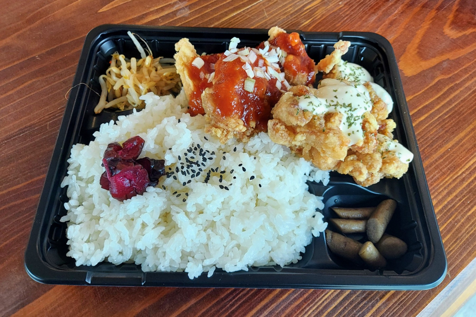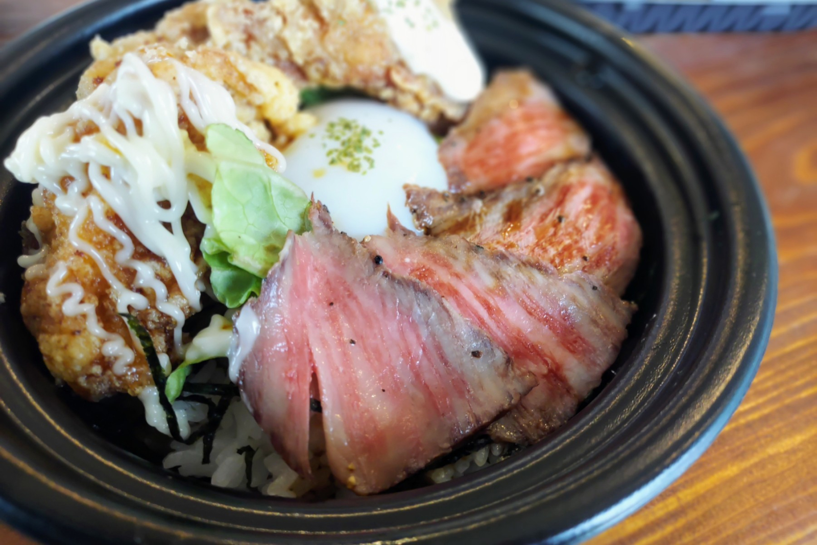 ■【菊池市】ウシドリのお弁当はからあげ、チキン南蛮、それにあか牛まで入ったまさに牛鶏三昧!