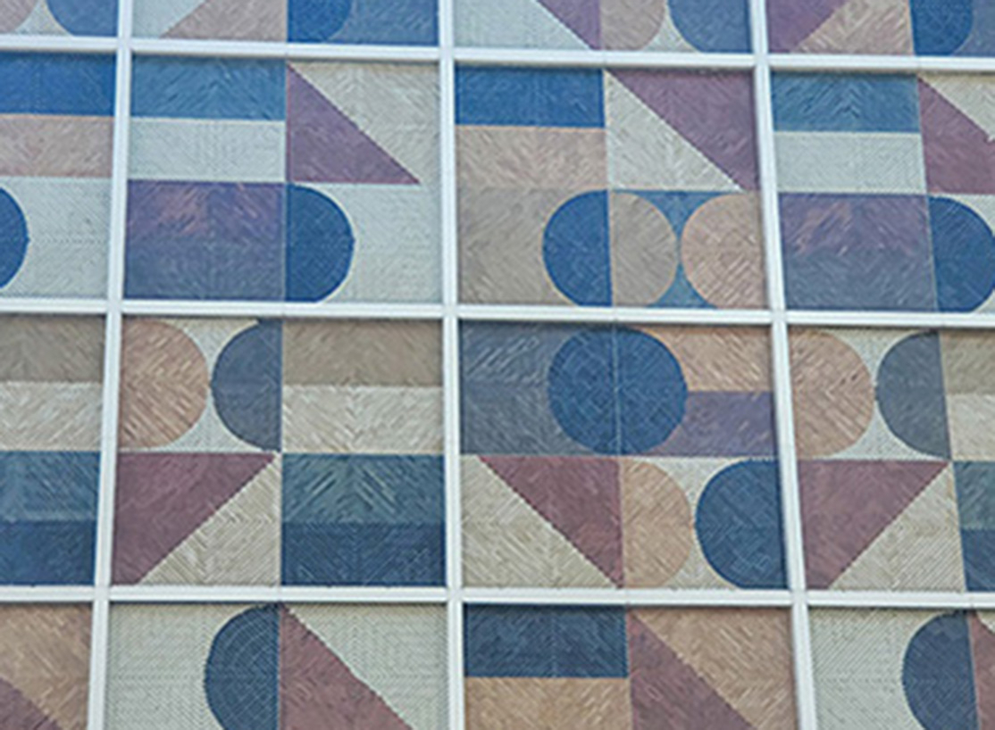 「日本近代建築の父」と称されるアントニン・レーモンドとその妻によって、1969年に作られた有田焼タイルの壁画で、幾何学的な模様が並ぶ不思議なモチーフは、ピカソを代表とする芸術運動“キュビスム”を発端として生まれたもの。レーモンドが過ごした1960年代の活気ある日本、そして熊本の街を記憶するアートのひとつです。