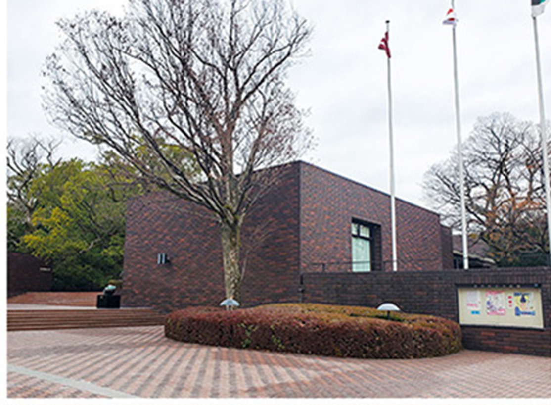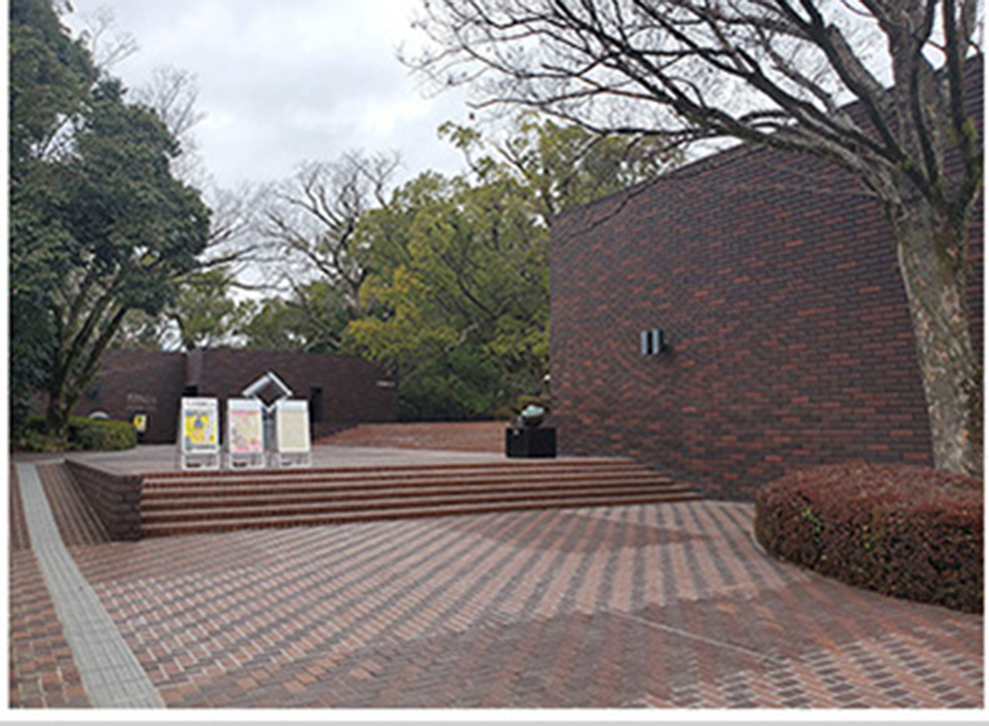 赤いレンガを基調としたシックな印象で、熊本城二の丸広場に溶け込みつつも、どっしりとした存在感。内部には吹き抜けのホールや大きな窓があり、気持ちよく季節を感じられる建物です。