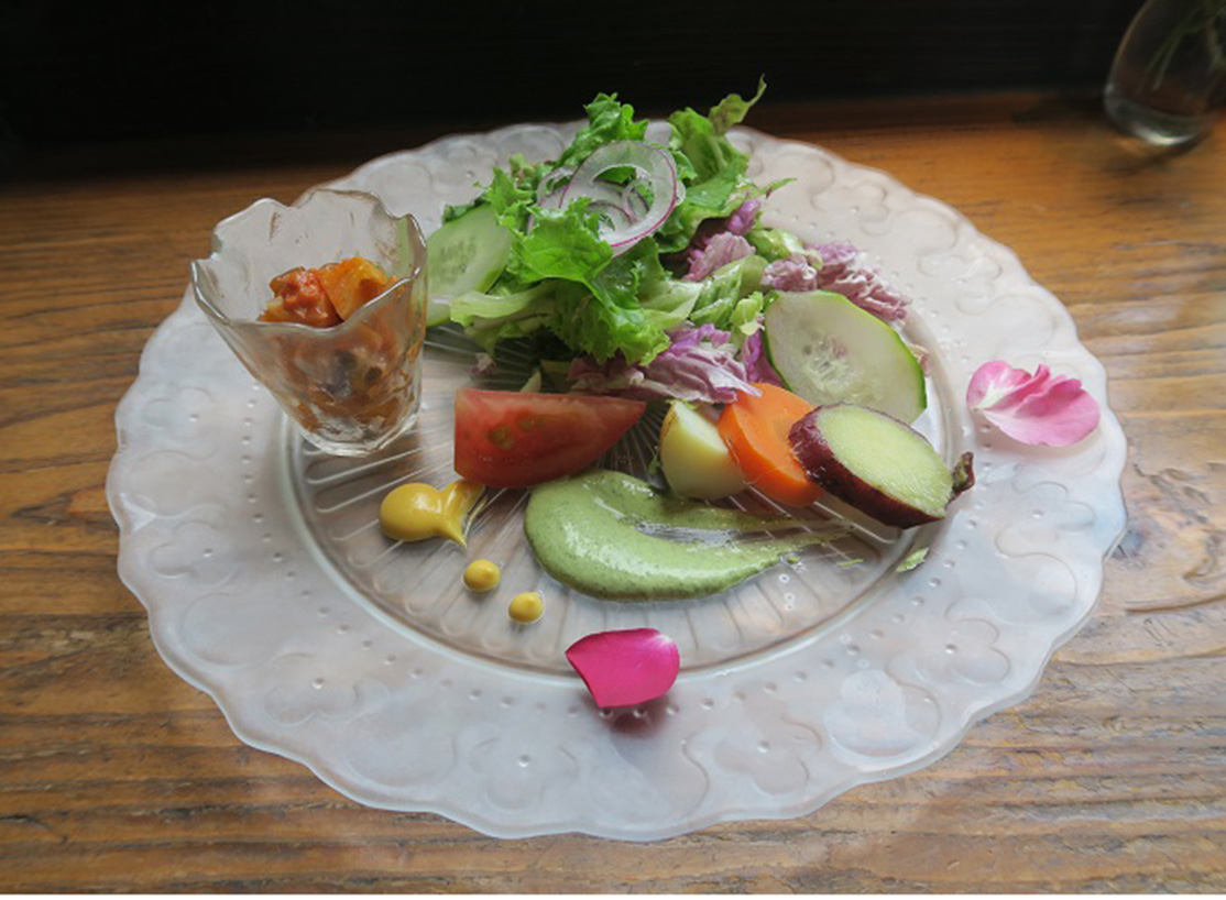 お店で出されるサラダは自家菜園から直送。