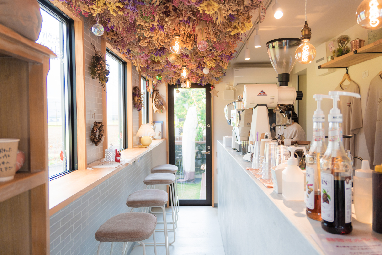 ■【カタルコーヒー】コンテナタイプの小さなカフェ。ドライフラワーと田んぼを眺めながらいただくコーヒーは至福の時間でした【熊本・八代】