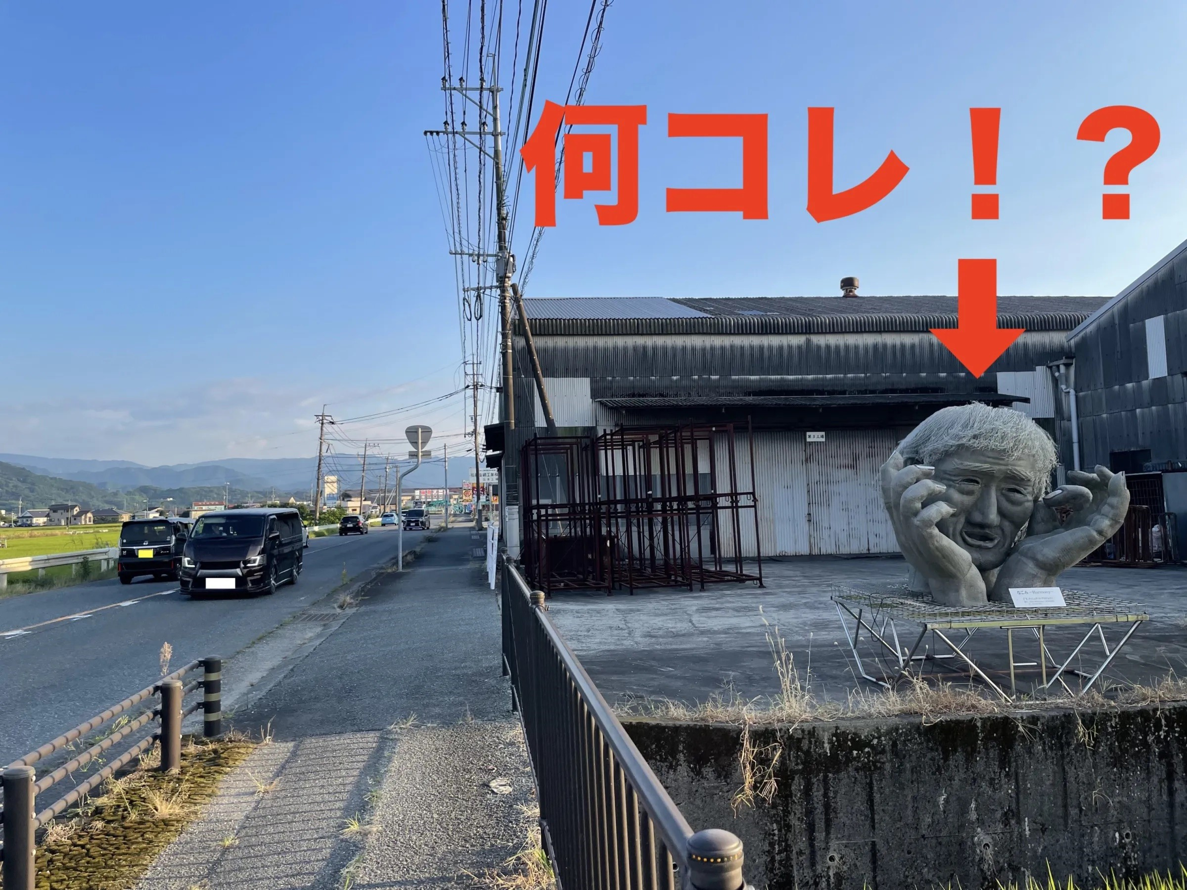 【恐怖!!】国道3号線に置かれた顔の特大オブジェ 全国どこにでもあるなんでそこにそんなものが!? みたいなものが熊本にもあります。国道3号線を熊本市内から八代方面に南下していると、 宇城市小川町あたりに結構な大きさの「顔のオブジェ」があるのをご存知でしょうか? 頬杖をついてるような格好をしたオブジェが確認できます。車と比べても、その大きさが測れるとお思います。 アート作品であることは間違い無いのですが…はっきり言います。怖ぇっす。近くで見たら迫力…。 展示(?)している会社「福岡金網工業株式会社熊本工場」に突撃しました。 詳細は右端のQRコードから⇒