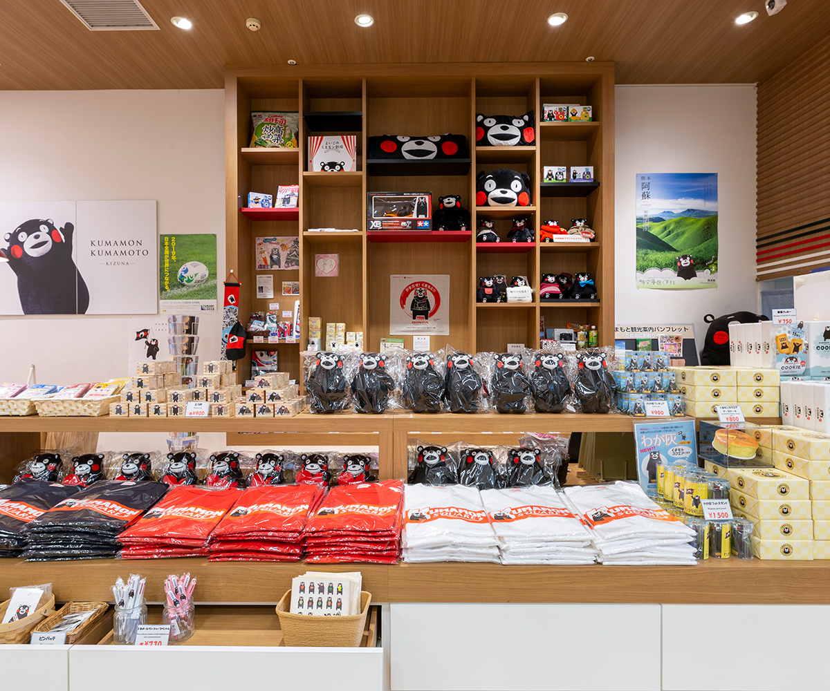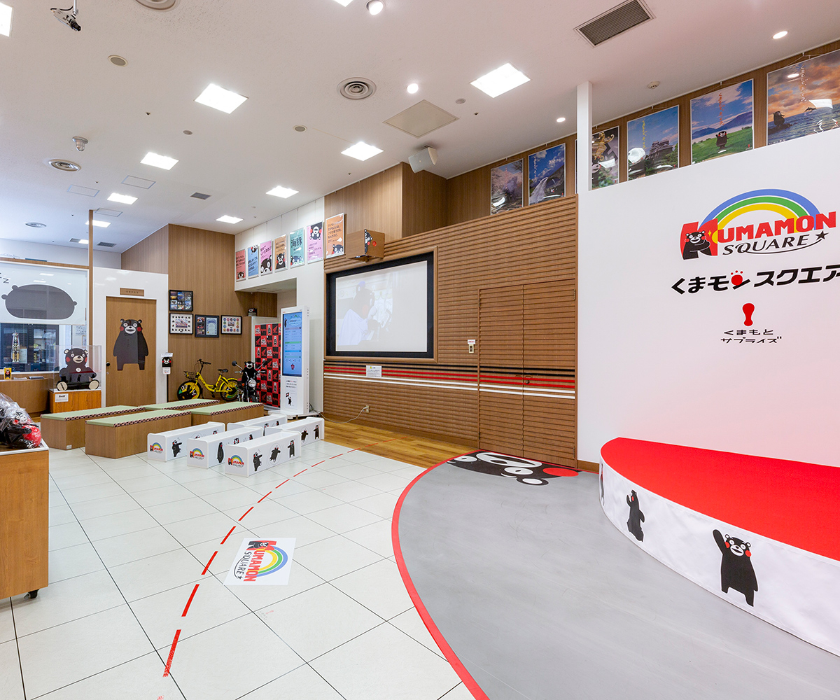 くまモンスクエアは、熊本県の営業部長兼しあわせ部長として国内外を飛び回っている「くまモン」の活動拠点です。営業部長室もありスクエア限定グッズも販売しています。くまモン在室時にはステージを開催しています!