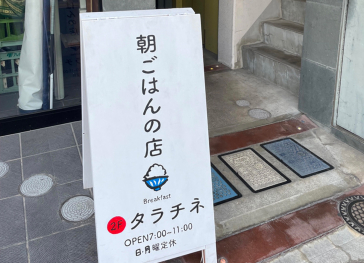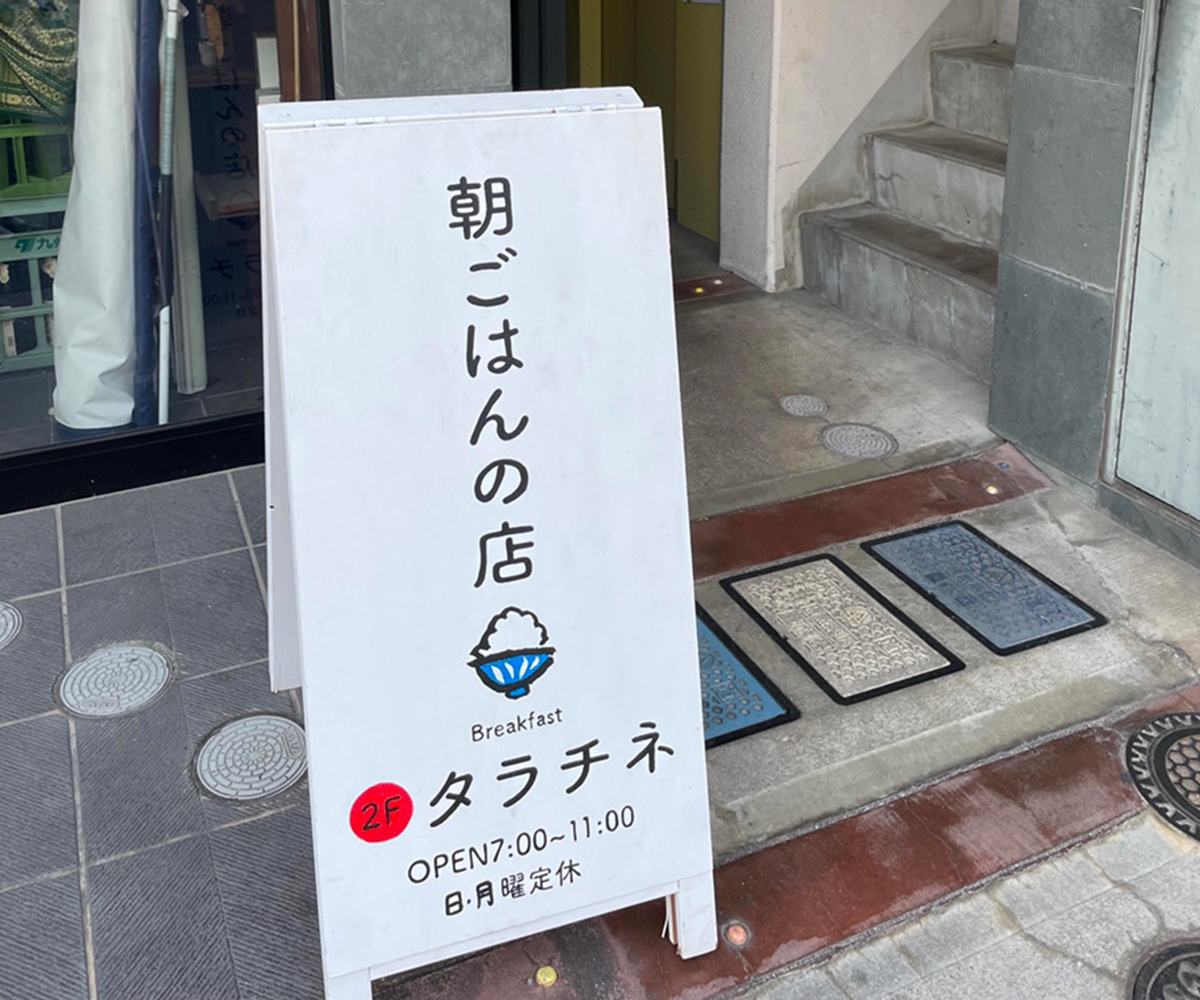 店主がお子さんたちに作ってきた「母の味」がいただける朝ごはんのお店。3種類の和洋のセットのほかに和え物やサラダ、煮物など季節の食材を使った小鉢(100円)もたくさん。その日の気分で好きなものを組み合わせていただくことができる。おススメは、卵かけごはん。ちりめんじゃこや塩昆布、明太子などたくさんの具材がのっていて、味だけでなく、見た目も楽しめる一品です。