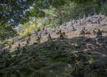 熊本市の西方、金峰山山麓にある洞窟、霊巌洞。晩年の5年間を熊本で過ごした宮本武蔵が、この洞窟にこもって兵法書「五輪書」を著したことは、あまりにも有名。周辺は、大分県の耶馬渓になぞらえて肥後耶馬溪と呼ばれています。奇岩と紅葉の美しい場所です。奇岩と紅葉の美しい場所です。