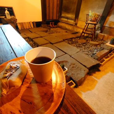 古民家の白壁が数多く残る来民にある古民家。安政三年(1856年)に建てられた建物を店主がセルフリノベーション。お部屋に入るとタイムスリップしたかのような感覚になります。古民家を自らリノベーションする遊び心を持った店主が楽しみながら作るホットサンド(テイクアウト)などのメニューは、数日で入れ替わるので、いつ訪れても楽しむことができます。