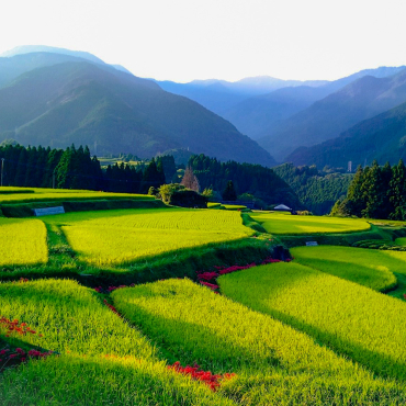 9月下旬、黄金色の稲穂と彼岸花の鮮烈な赤で鮮やかに彩られた美里町。ここには、幾重にも続く棚田など、自然と人の営みが織りなす美しい農村風景が今も残されています。町内には、地域の自然、文化、人などに触れながら歩く「フットパス」コースが15コース設けられ、地域のありのままの姿を楽しむことができます。