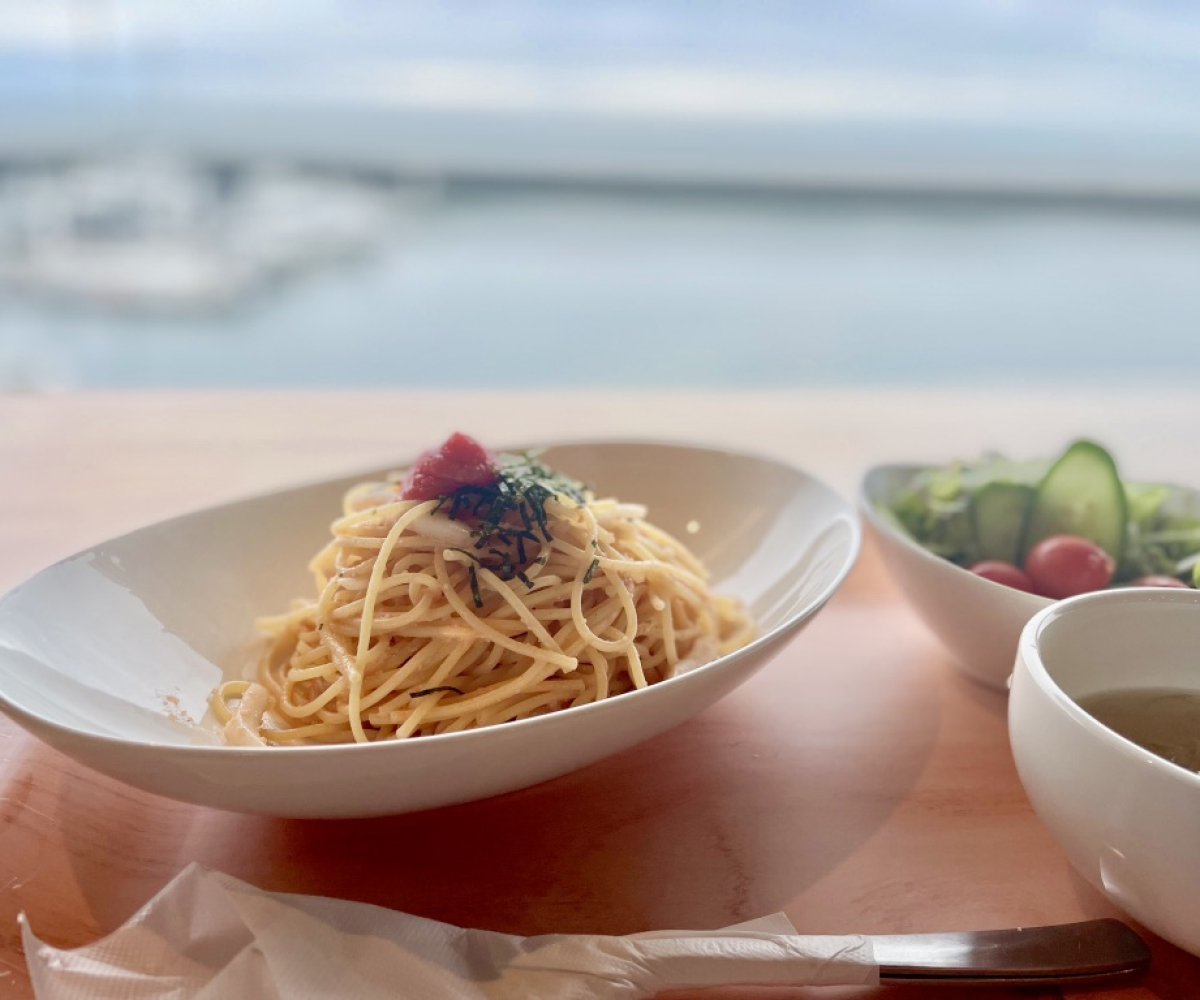 道の駅宇土マリーナにある「GENTOS」で海を眺めながらの贅沢な雰囲気で味わうパスタと音楽